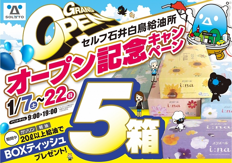 ガソリン・軽油を20リットル以上給油でBOXティッシュ5箱プレゼント