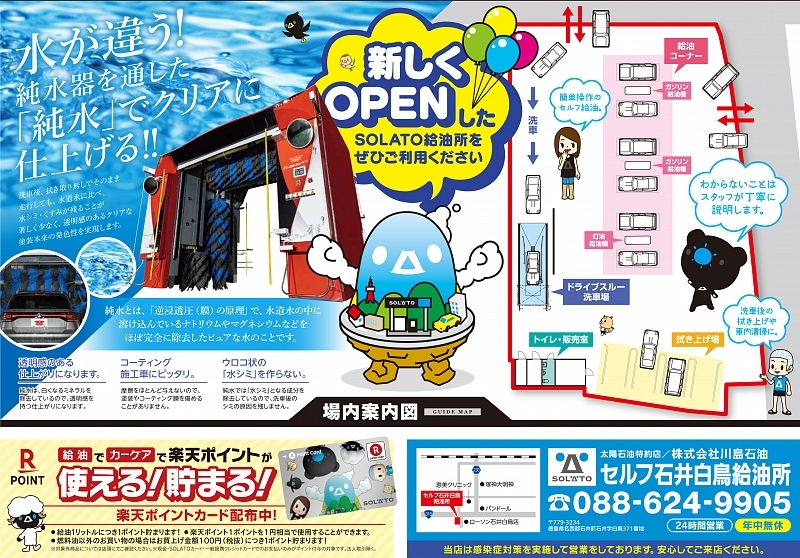 当社洗車機設置店舗のセルフ洗車機が2023年4月下旬より「純水洗車」となり、徳島県下でも当社4店舗にしかないセルフ式「純水洗車」となりました。