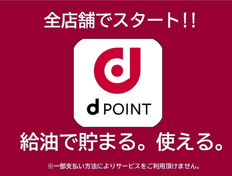 2020年秋頃より弊社全店舗にて【dポイント】が、ガソリン・軽油・灯油をお買い上げ「200円=1ポイント」毎に【貯まる】。