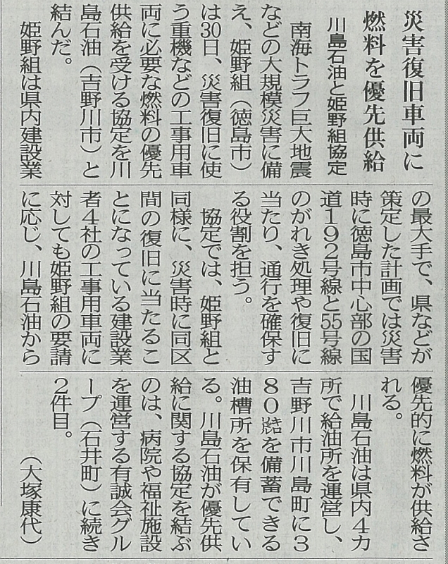 災害協定が徳島新聞・建通新聞に掲載