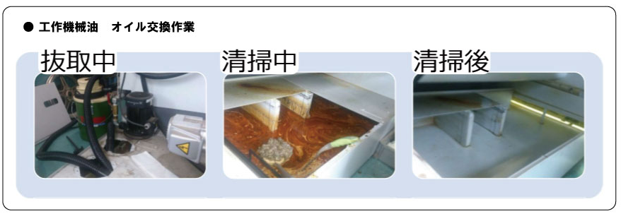 また、お客様の大切な各種機械の油剤管理、メンテナンス、潤滑油交換作業(更油)も行っております。