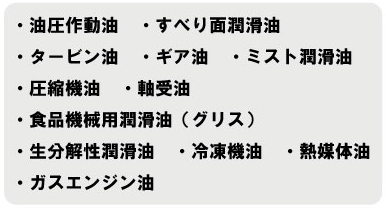 | ① | 機械オイル(コンプレッサー油・チェーン油・油圧作動油・真空ポンプ油・冷凍機油) | ||